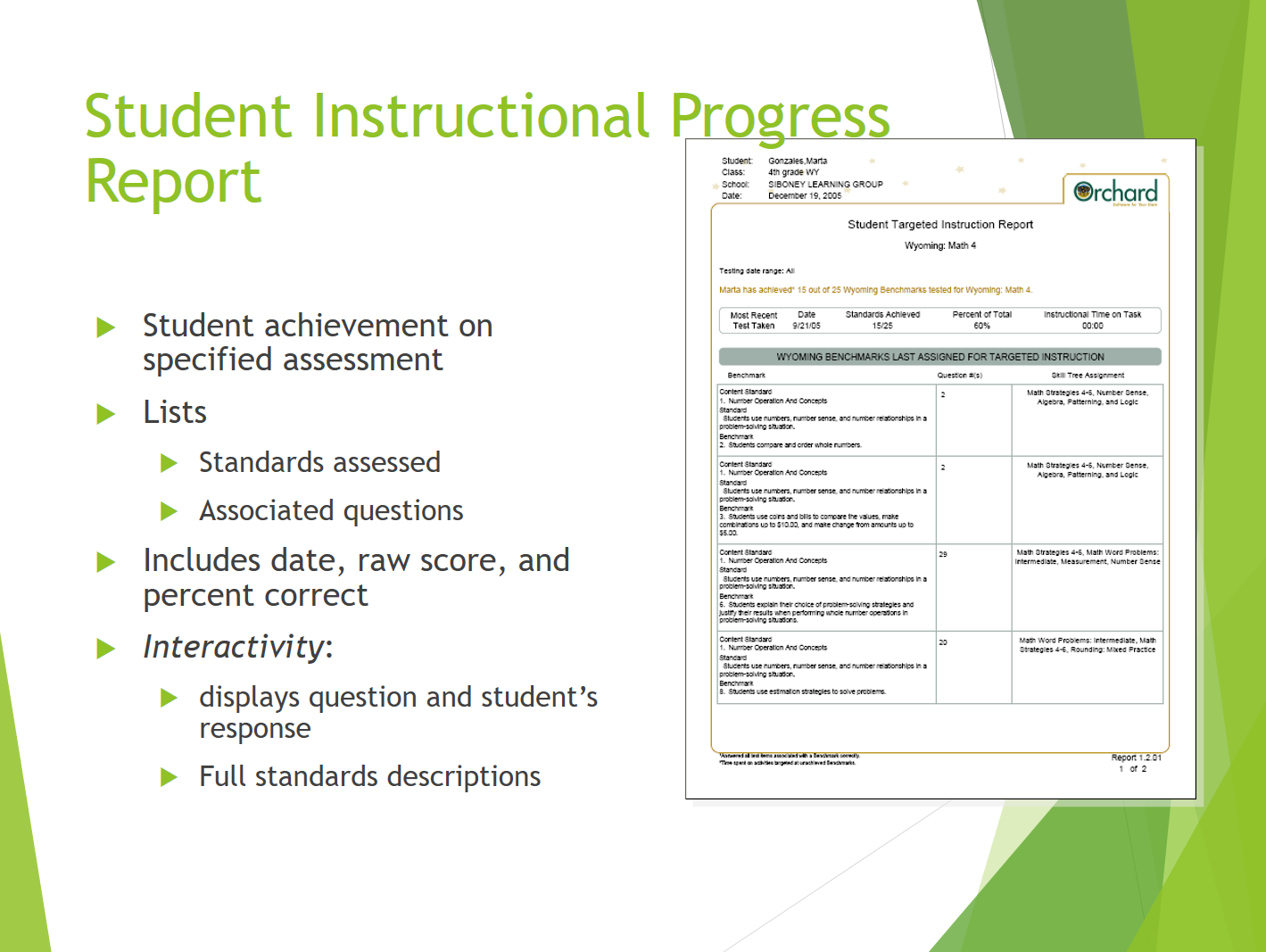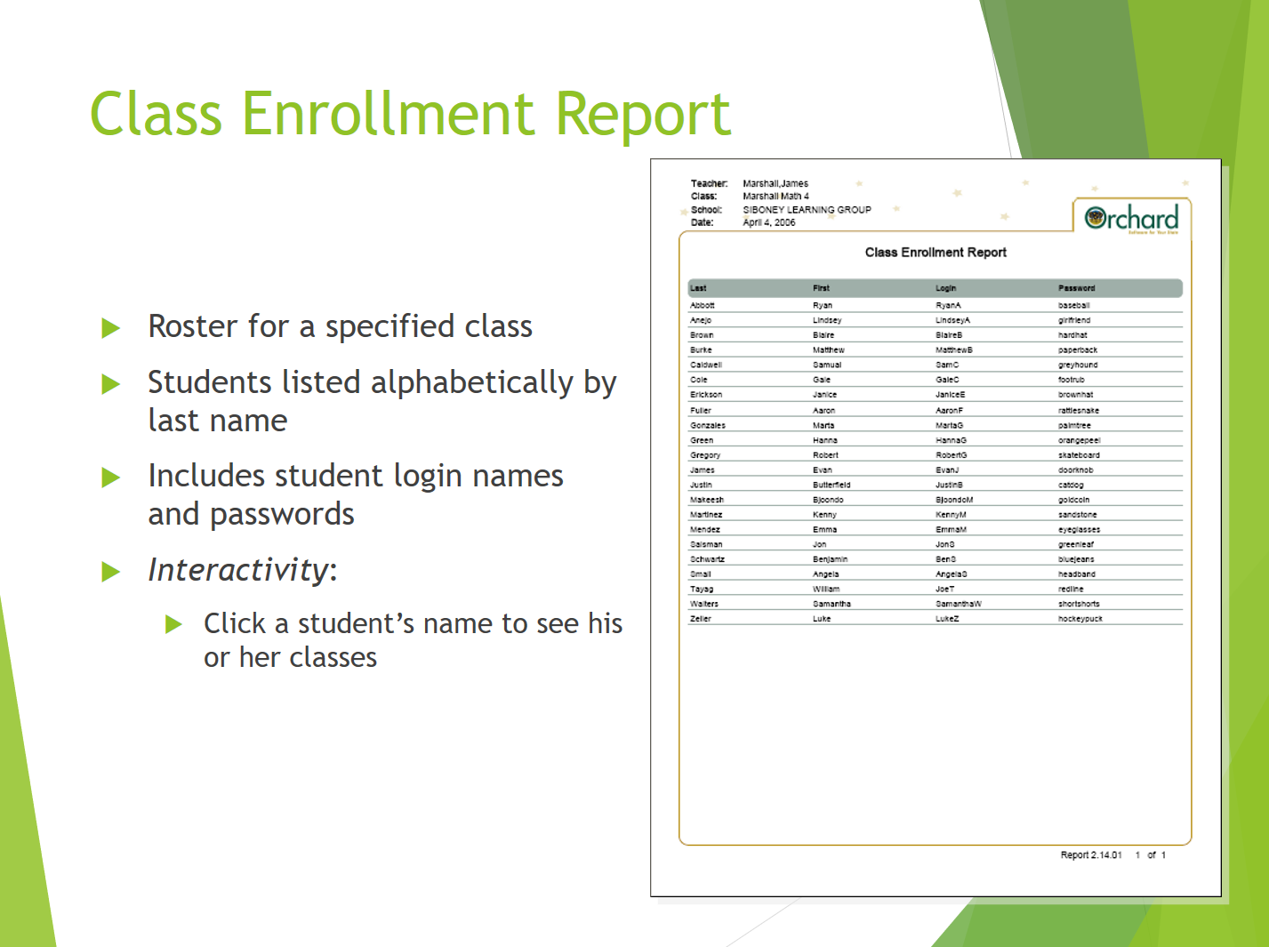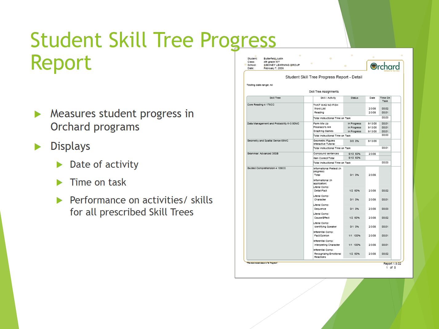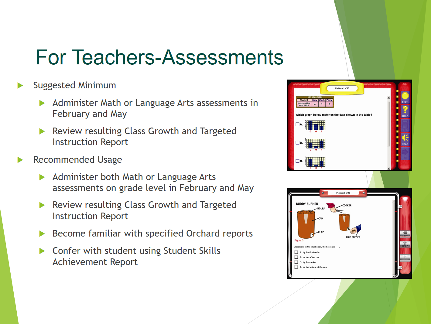 The goal of the training guides is to provide you with the basic knowledge you need to effectively integrate into your curriculum. By completing a series of key activities, you will learn how to navigate the programs, modify program parameters according to your students’ individual needs, and use data from Orchard’s reports to inform instruction. Each of these activities include step-by-step instructions and screenshots as well as helpful annotations that contain classroom implementation ideas, program notes, and/or alerts to strategies for successful use of the programs.